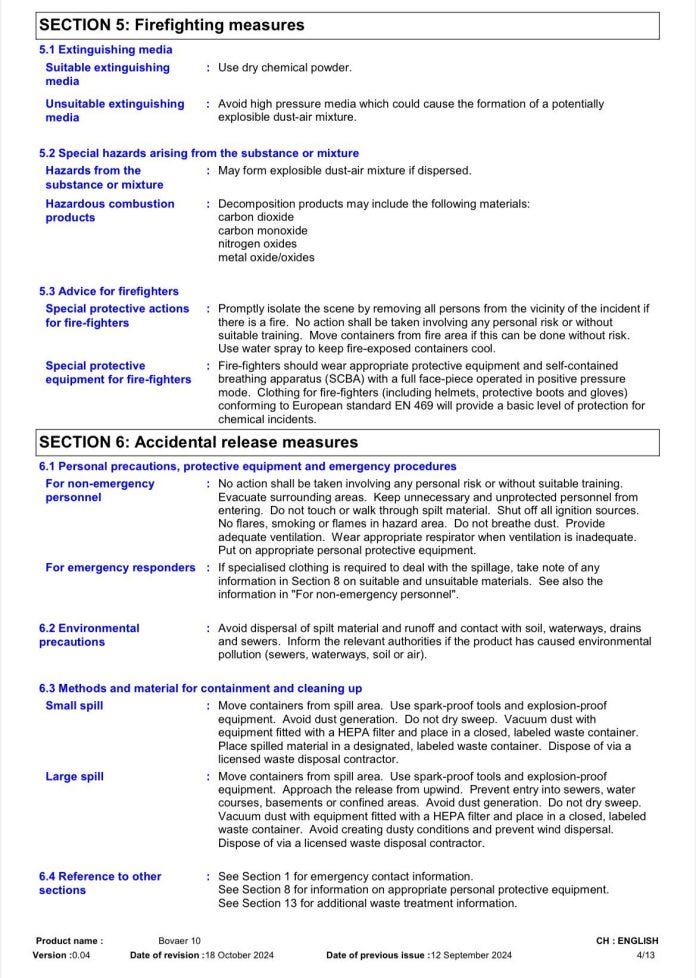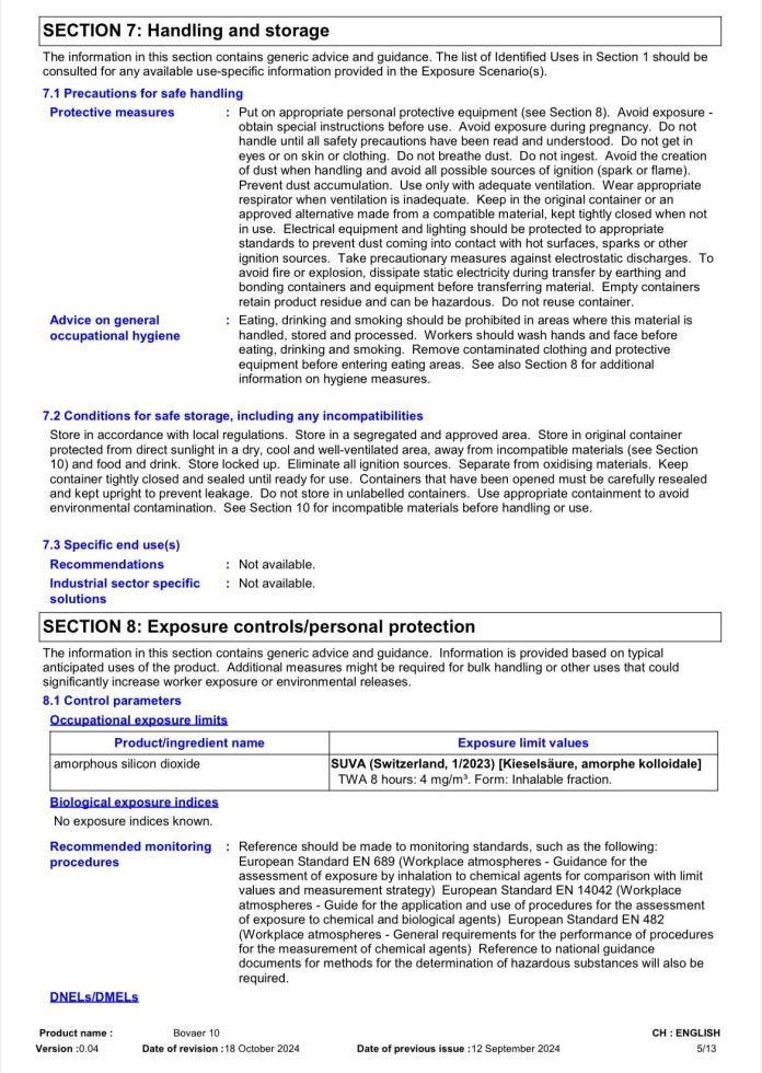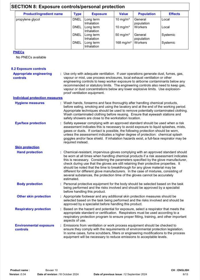 Produsenten anbefaler vernebriller, hansker og spesialdrakt ved håndtering.