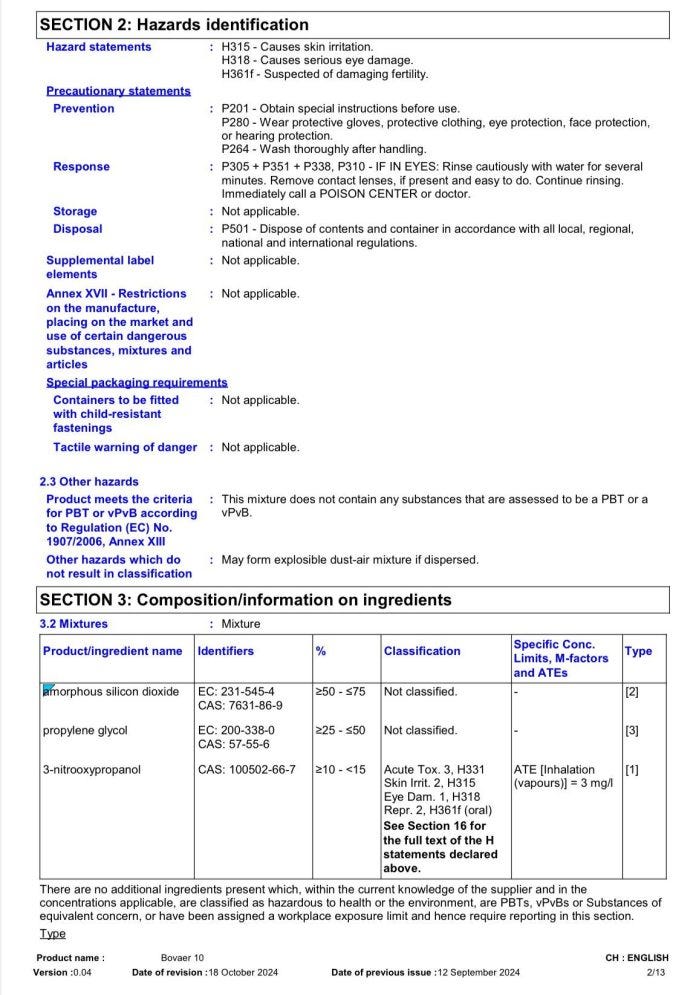 • 3-nitrooxypropanol = skadelig, giftig og mistenkt for DNA-skade og svekket reproduksjon