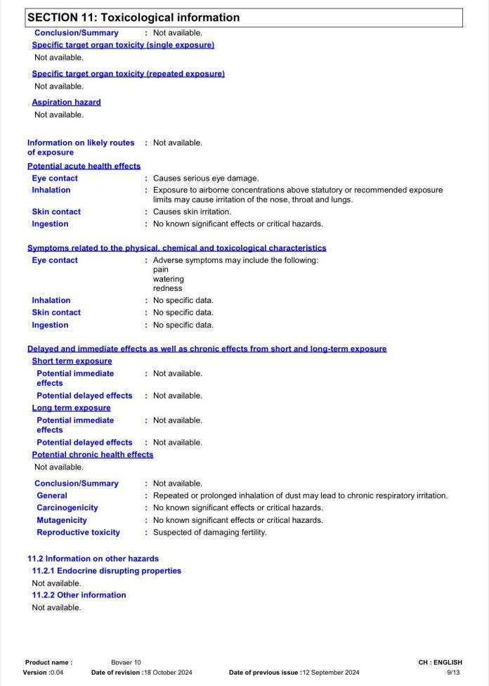• Eksponering kan føre til kjemiske forbrenninger og behov for legetilsyn i 48 timer